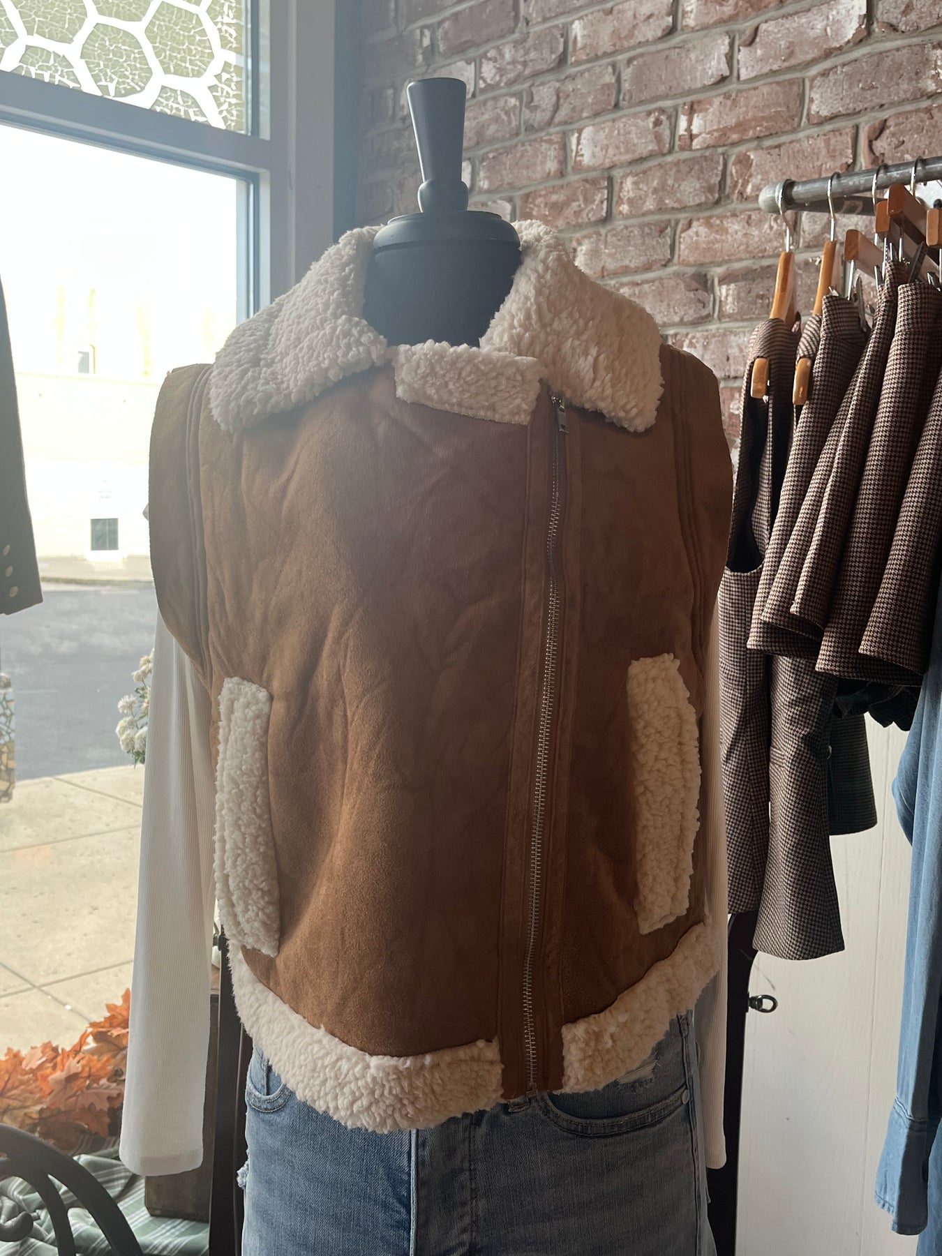 Stay warm and stylish with this Faux Suede Inner Fur Zip Up Vest. Featuring a soft faux suede exterior and a cozy inner fur lining, it provides comfortable insulation without bulk. The convenient zip-up design makes it easy to layer over any outfit, adding both practicality and a sleek touch to your look. Perfect for cool days when you want lightweight warmth with a chic edge.