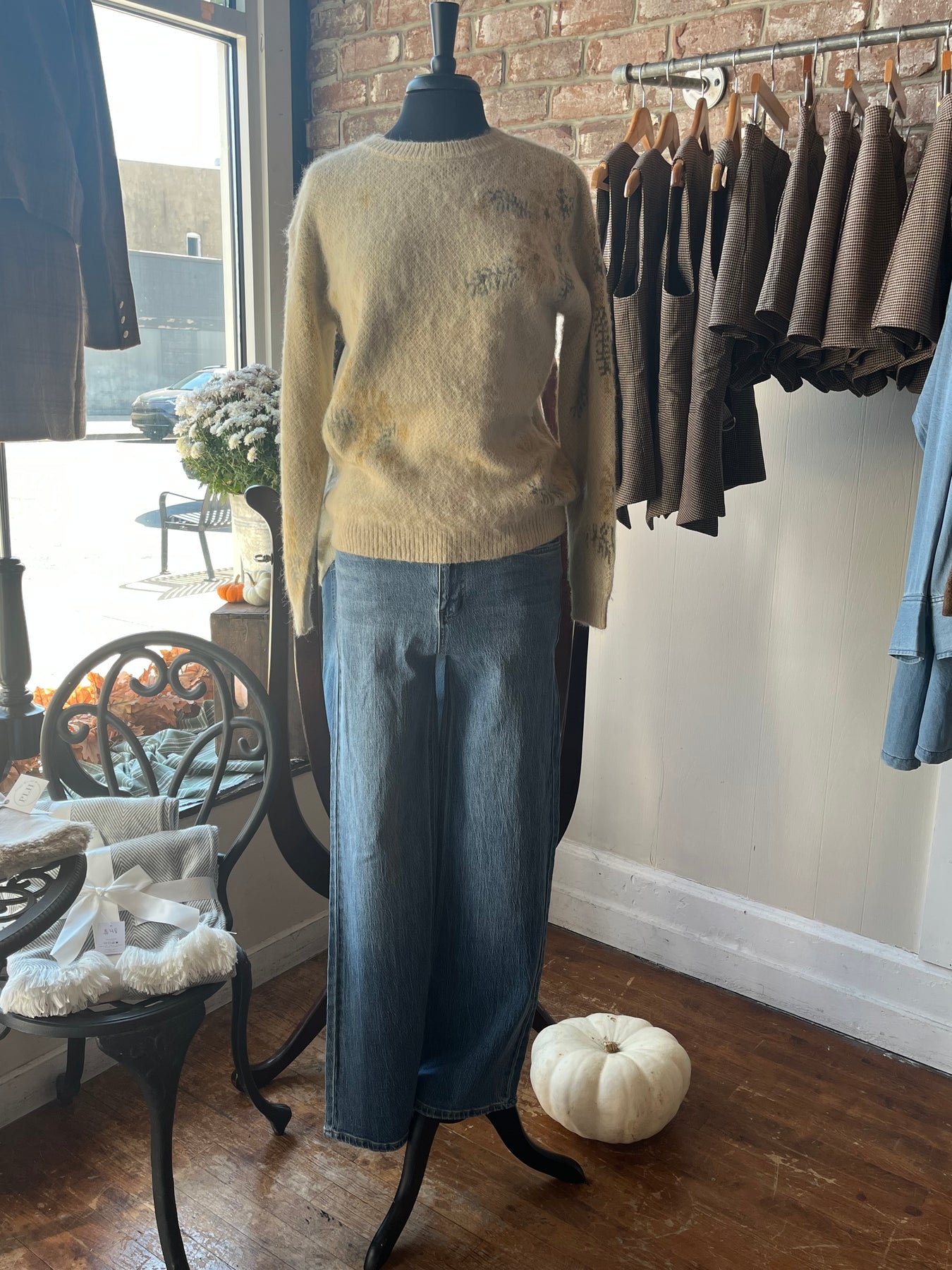 Add a touch of sunshine to your closet with this light tan pullover sweater, detailed with delicate yellow floral accents. Designed for comfort and style, it effortlessly brightens any outfit while keeping you cozy. Whether layered or worn alone, this sweater is a versatile and charming choice that enhances your everyday look with a subtle floral flair.
