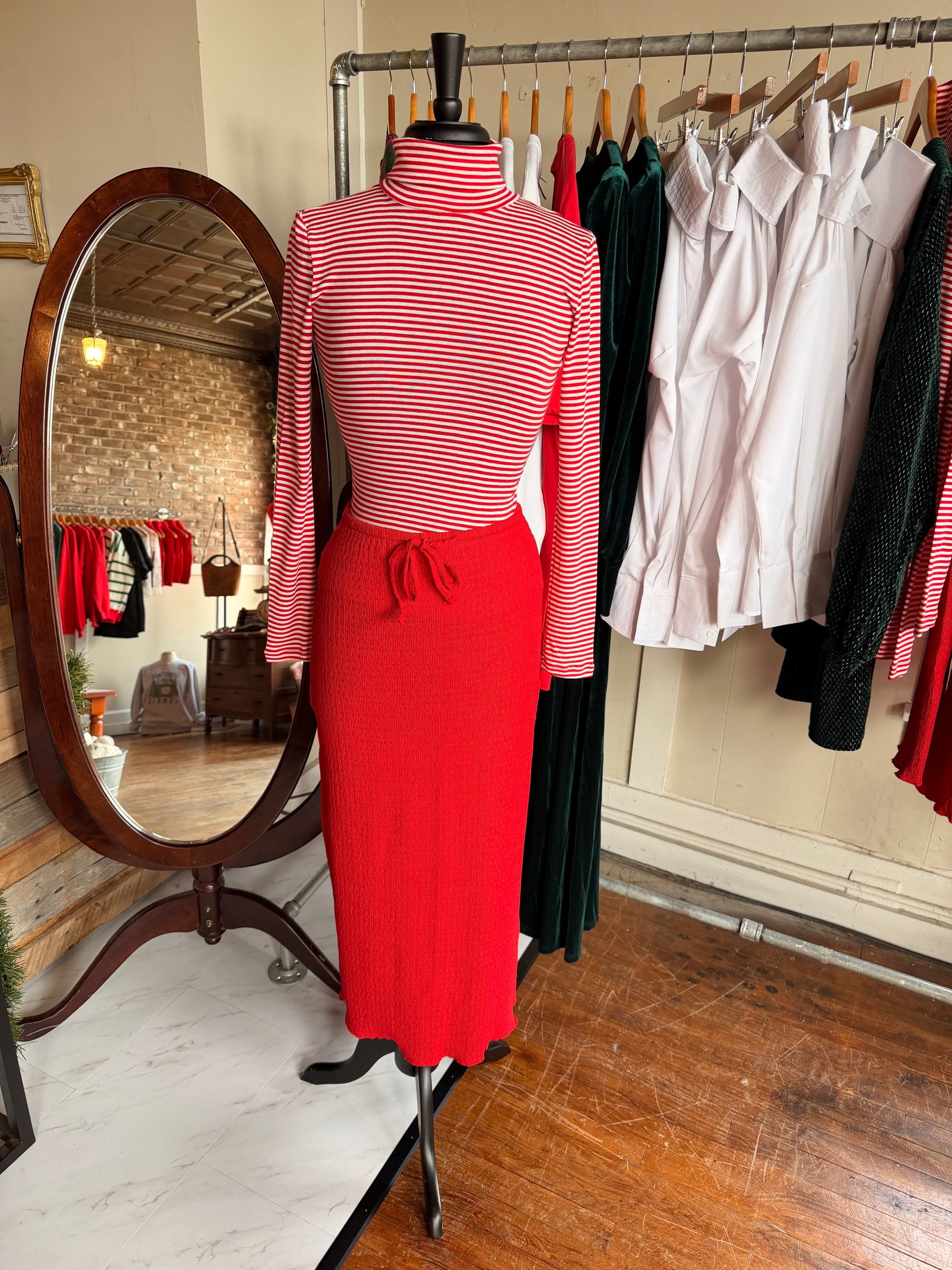 Make a confident statement with this striking red long knit skirt, designed for those who refuse to blend in. The luxurious fabric drapes beautifully, creating an elegant silhouette that works for any occasion—from casual brunches to sophisticated dinners. Its timeless length and rich crimson tone ensure you'll reach for it season after season.