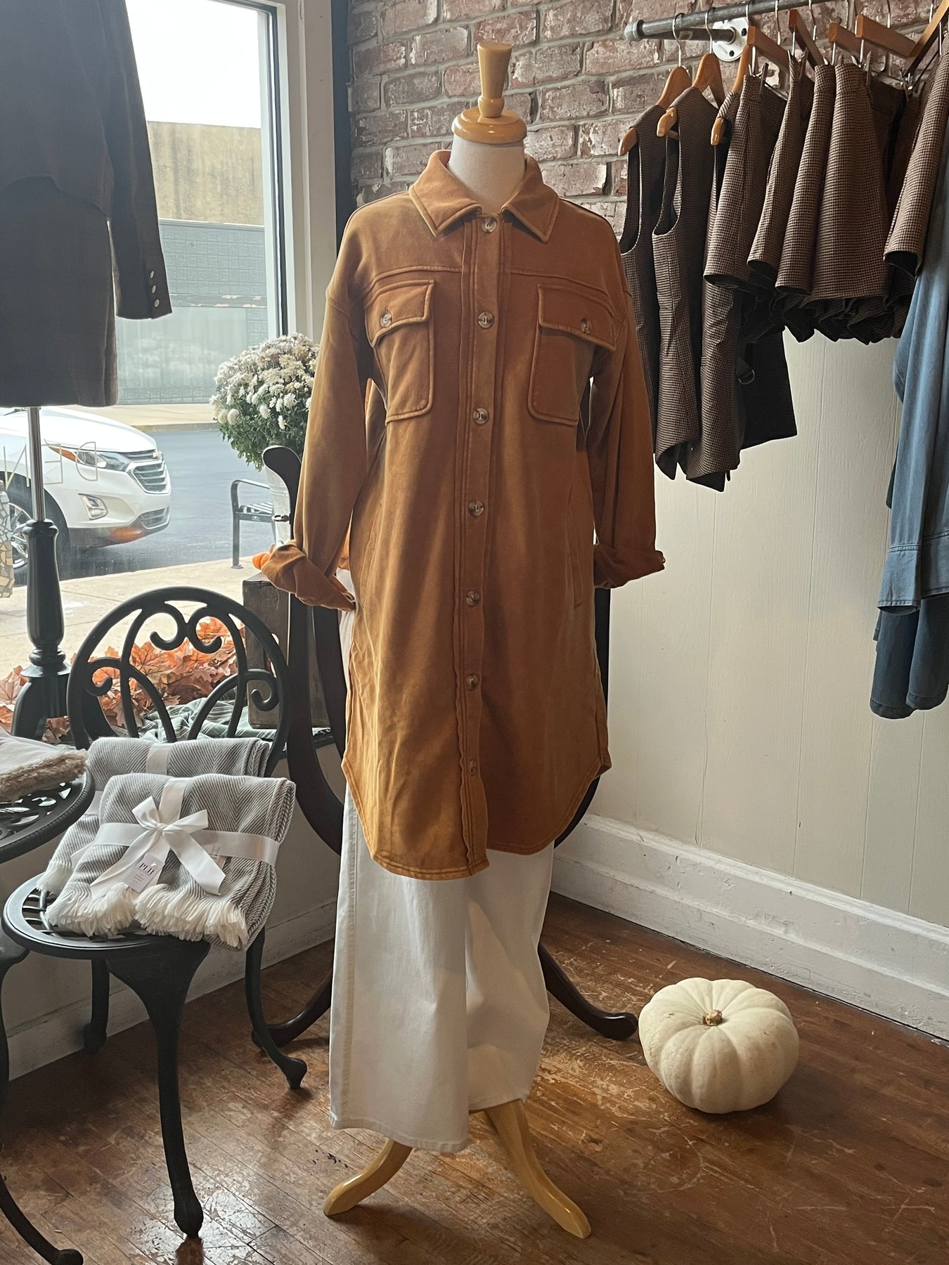 This pumpkin-colored washed terry shacket blends comfort and style effortlessly. Crafted from soft, breathable terry fabric, it offers a cozy layer with a relaxed fit that suits any casual occasion. Its warm hue adds a vibrant touch to your outfit, making it an ideal choice for autumn days when you want to stay both comfortable and fashion-forward.